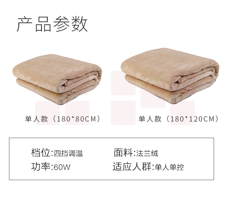 南极人NanJiren 电热毯 安全调温型电褥子 长1.8*0.8米 法兰绒除湿电毯子 单人学生宿舍家用