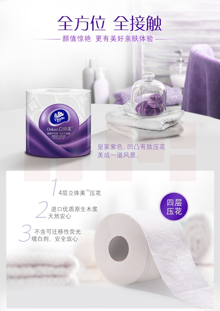 维达(Vinda) 立体美卷纸 纸巾 手帕纸24卷 X 163g
