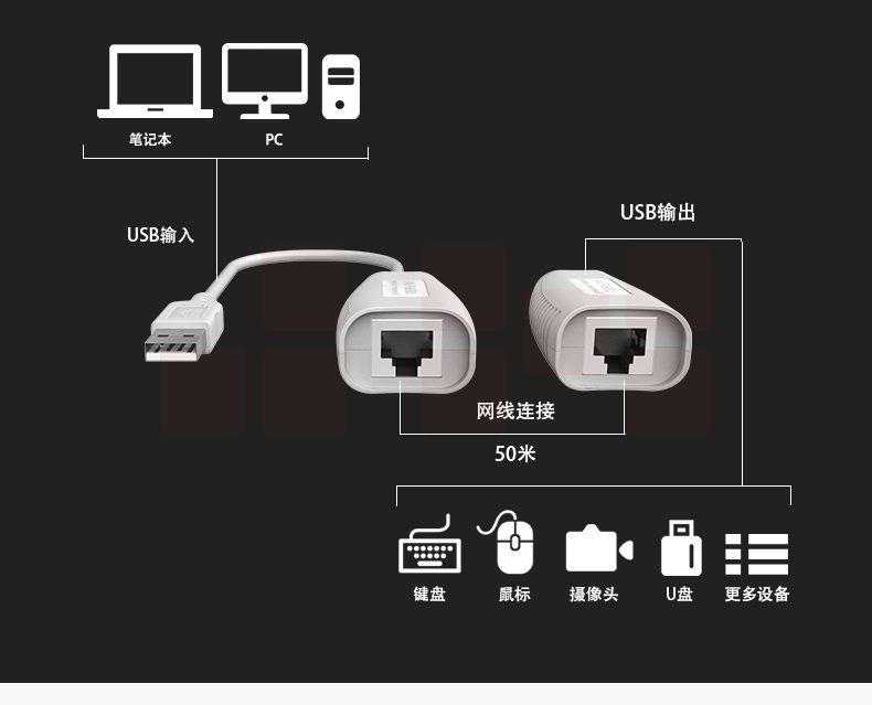迈拓维矩MT-150FT 网线转usb延长器50米网口rj45网络延伸传输放大器