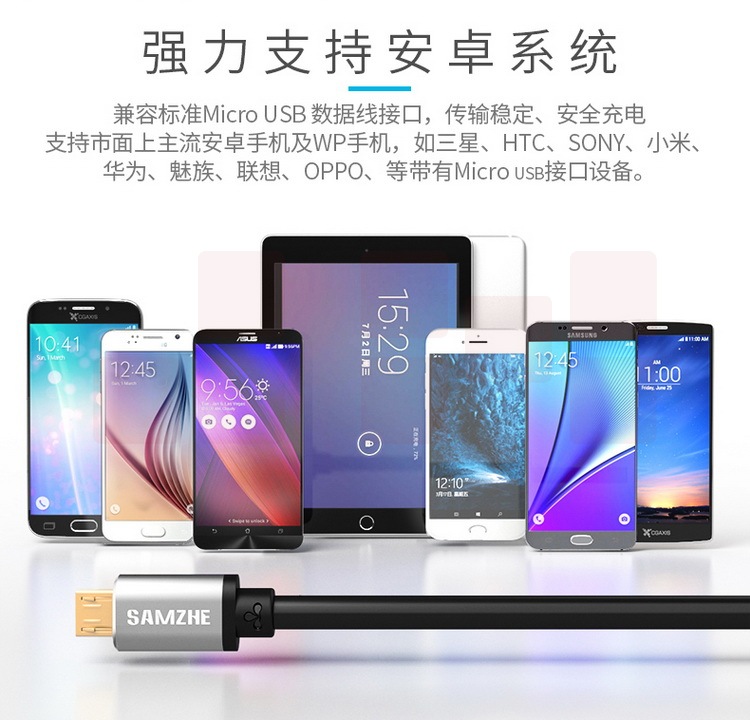 山泽 安卓数据线 手机充电线 3A快充Micro USB充电器线 支持华为小米vivo/oppo红米三星魅族 2米 黑色