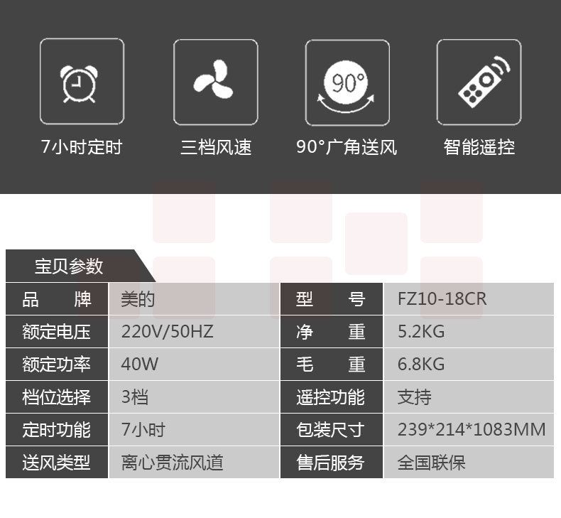 美的(Midea) FZ10-18CR塔扇遥控无叶静音电风扇立式落地扇