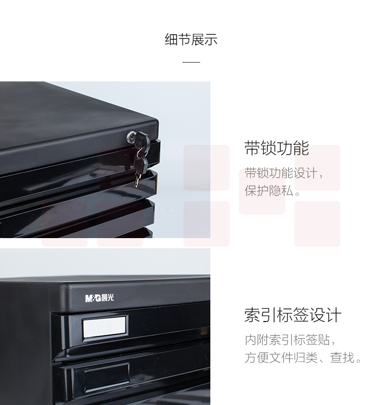 晨光(M&G)五层文件柜收纳栏 资料收纳带锁 ADM95298 黑色/灰色
