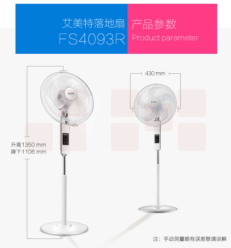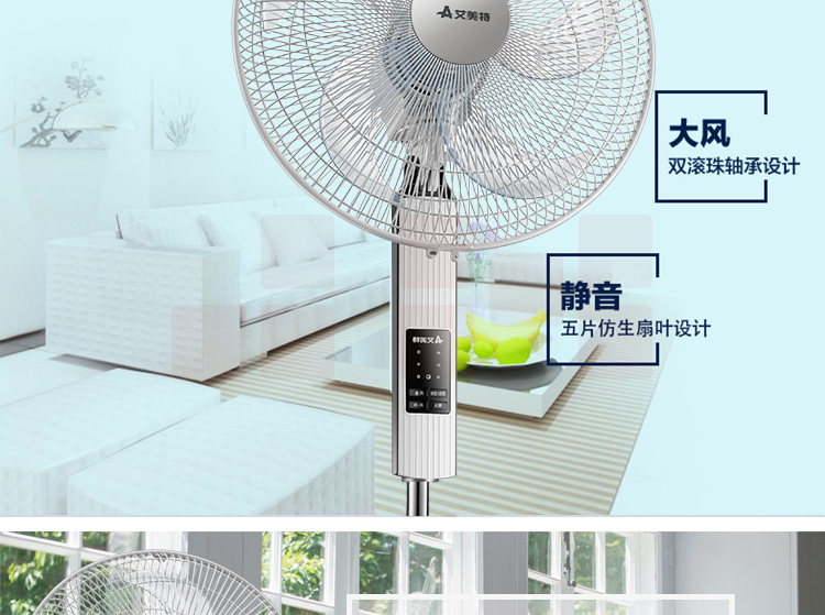 艾美特电风扇FS4093R家用16寸落地扇遥控超静音宿舍办公室风扇