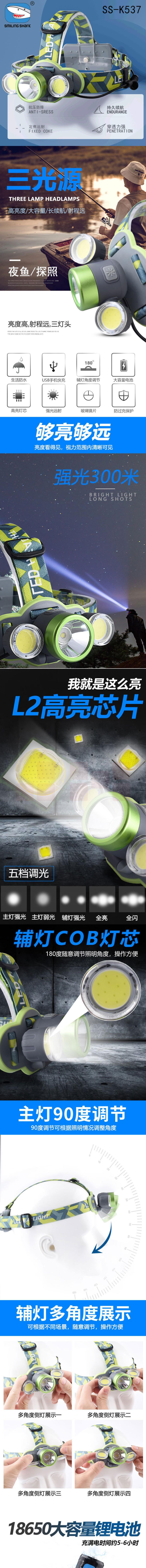 微笑鲨K537大功率可充电远射强光头灯 头戴式手电筒