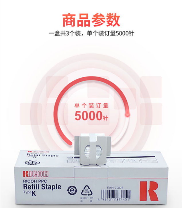 理光(Ricoh)K型 钉书针补充型(5000针*3) 适用于SR3220
