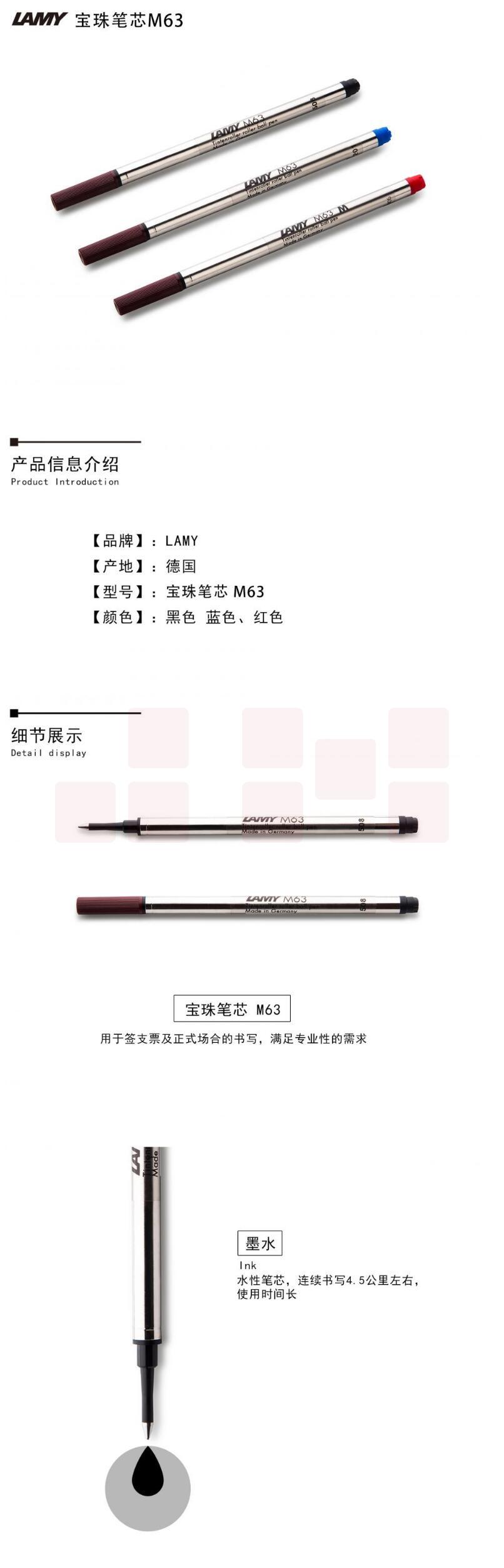 凌美 宝珠笔笔芯 签字笔笔芯 一次性替芯 黑色M63 货号:JC