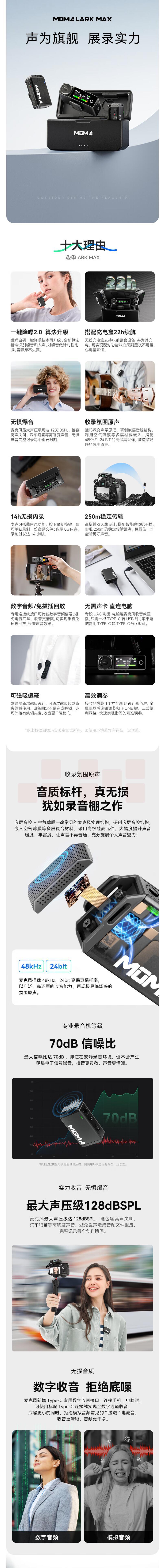 猛玛 无线领夹麦克风Lark Max 一拖二 货号:YC