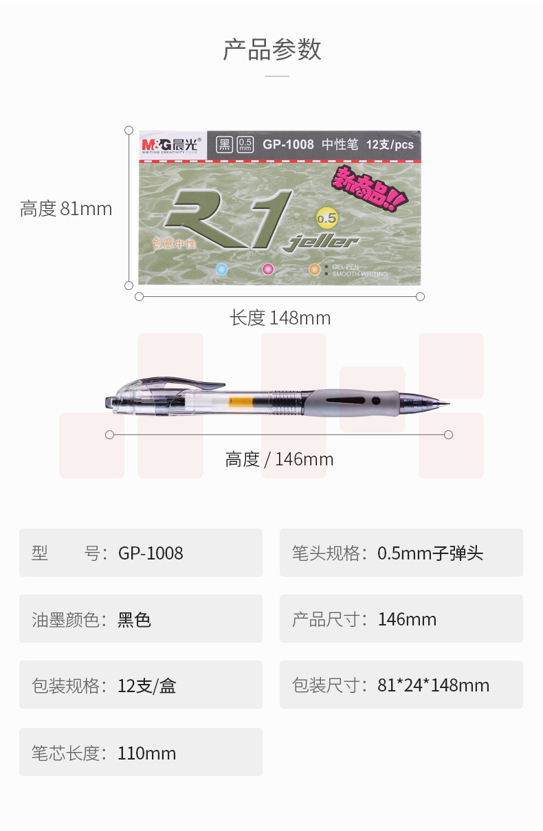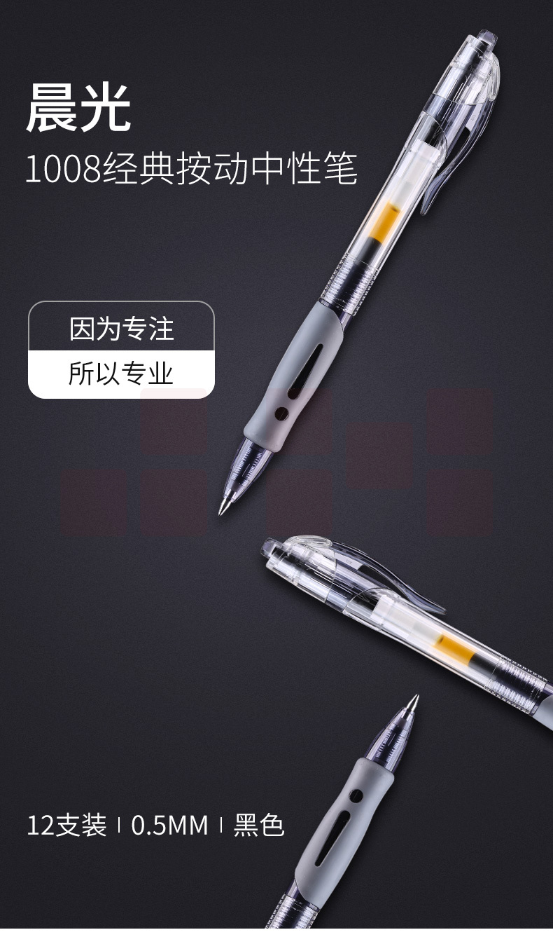 晨光 中性笔 GP-1008 0.5mm 签字笔(黑色) 12支/装