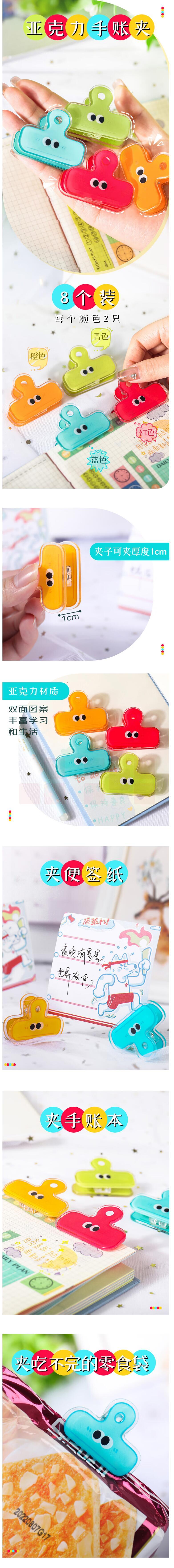 表情燕尾夹 彩色长尾票夹 大眼款亚克力书夹子 8个装