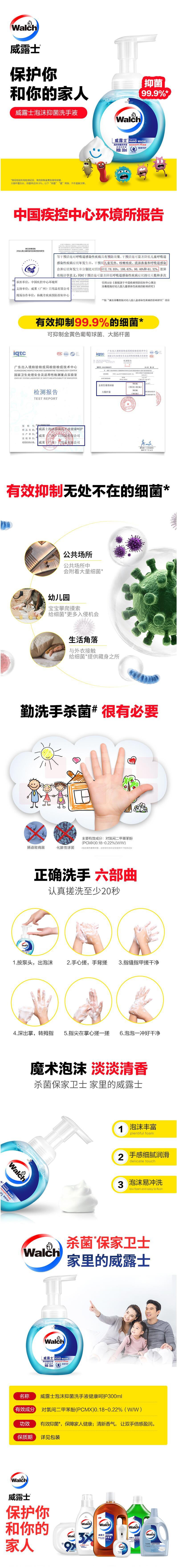 威露士 泡沫洗手液225ml 健康呵护 清香抑菌
