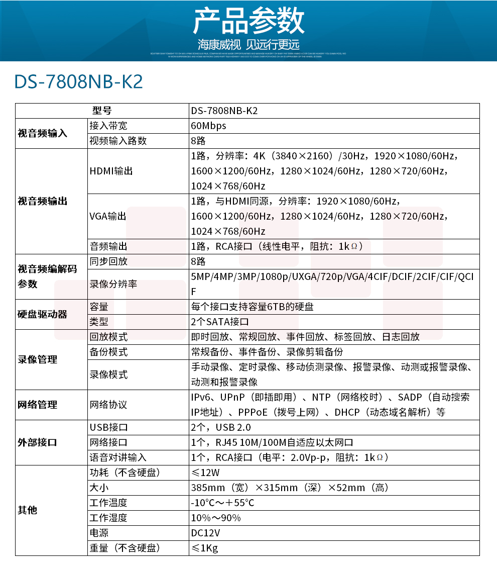 海康威视 DS7808NB-K2 网络高清监控硬盘录像机