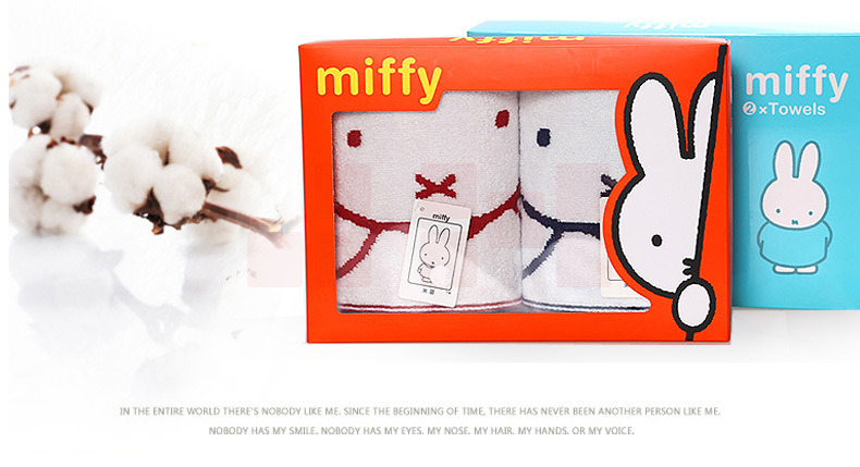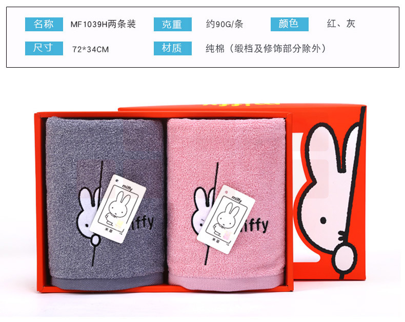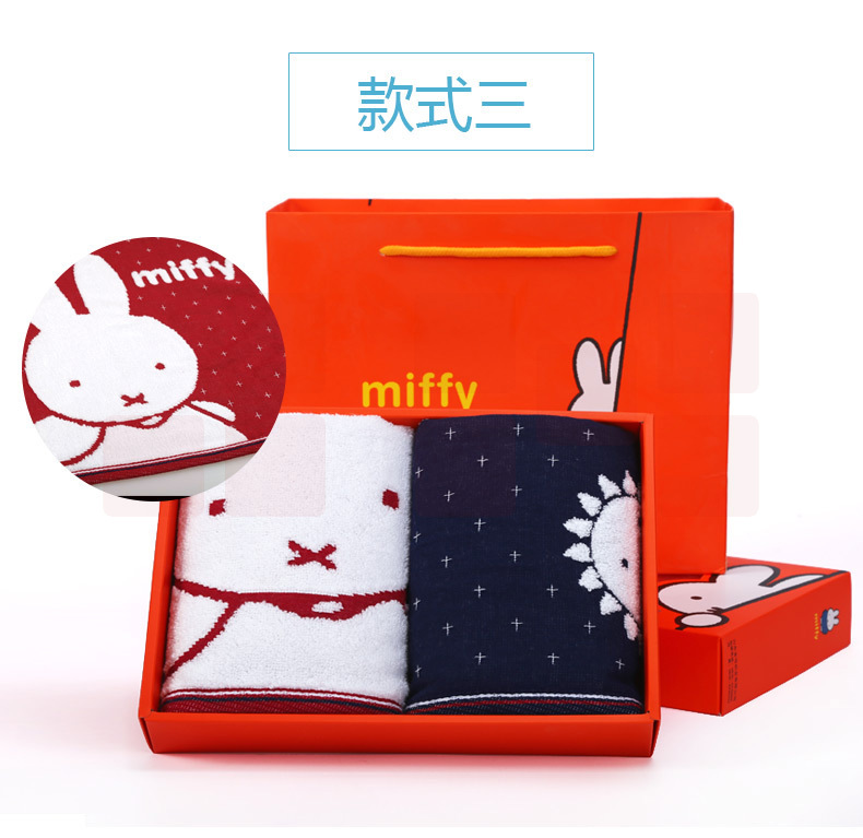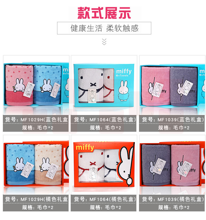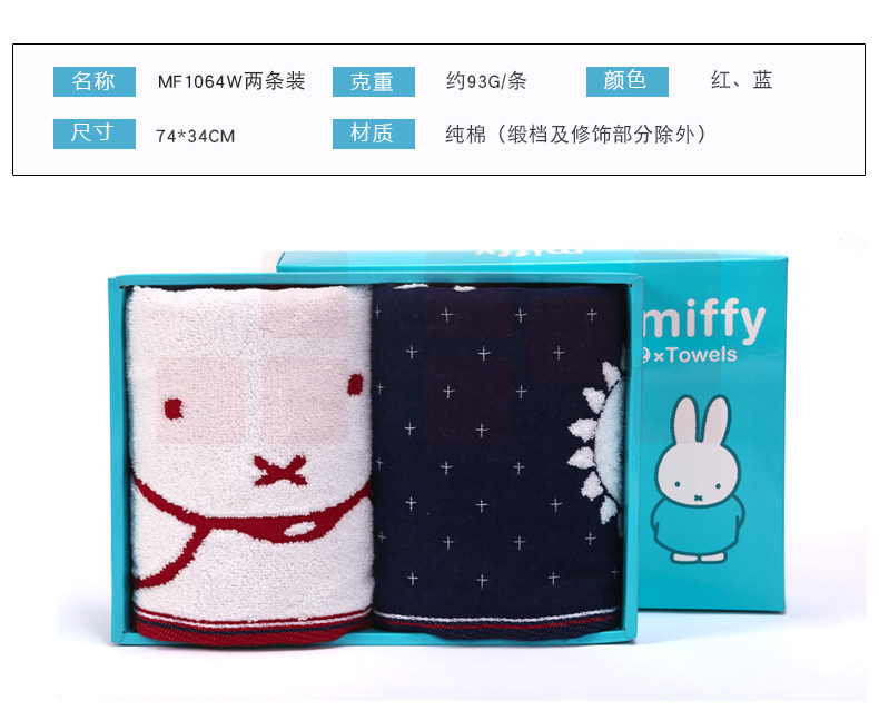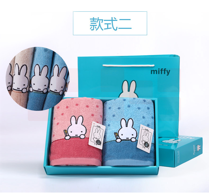 金号 毛巾礼盒纯棉可爱米菲绣花情侣面巾二条装婚庆礼品生日礼物公司福利 MF1029H蓝色色礼盒