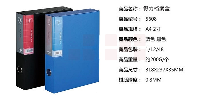 得力 5608 档案盒 蓝色文件盒 (48/箱) 237*318*35mm