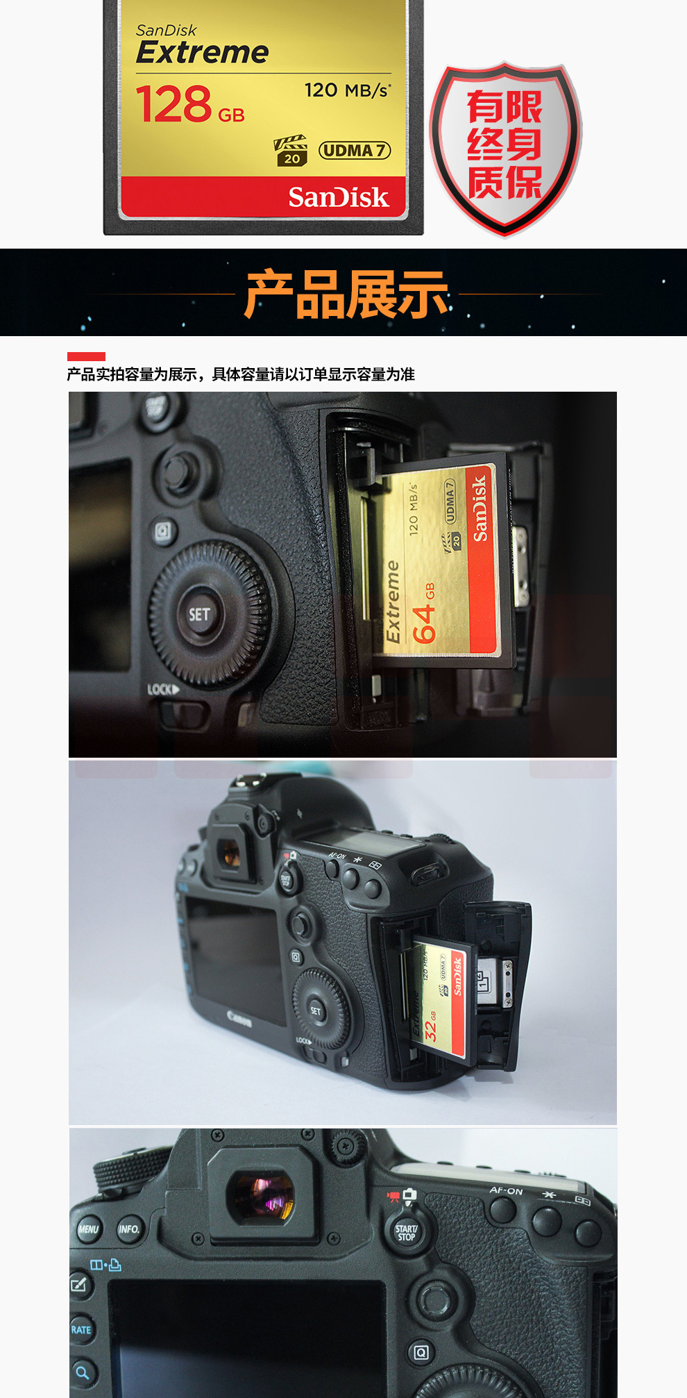 闪迪 SanDisk CF存储卡 SDCFXSB-128G-Z46 128GB 至尊极速 120MB/S