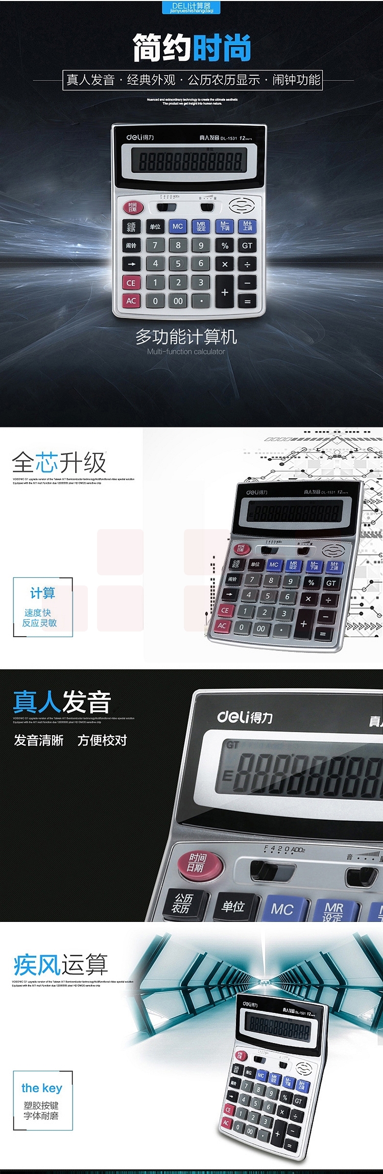 得力 1531 语音型计算器 (单位:台) 银色