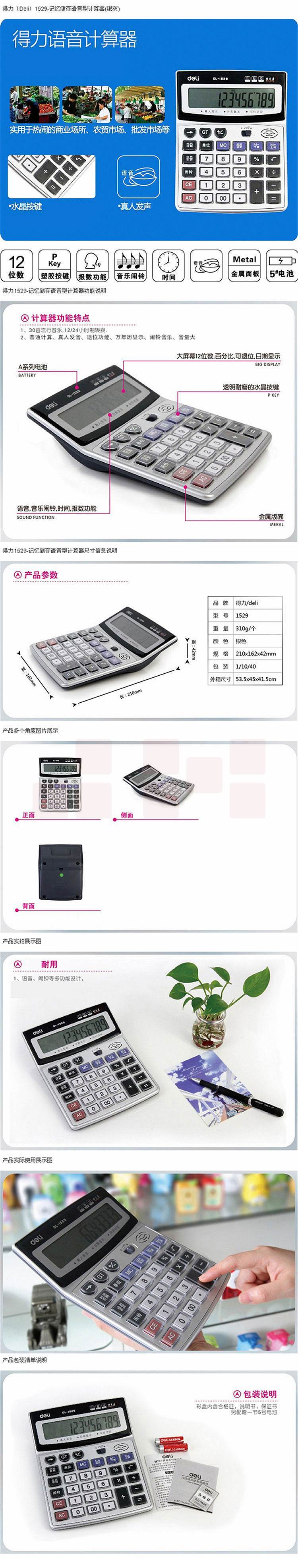 得力 1529 语音计算器 (单位:台) 银灰
