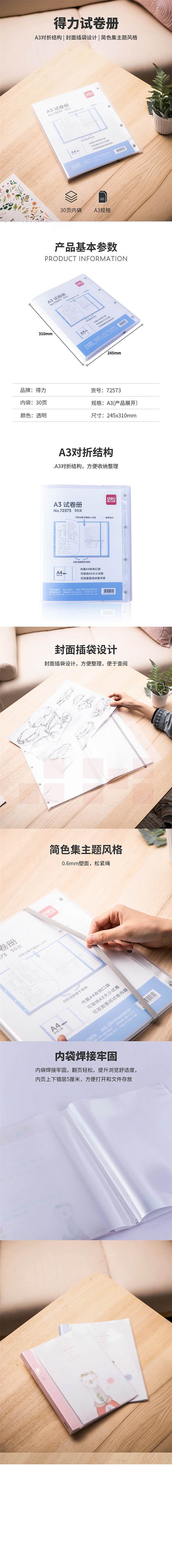 得力72573 30页A3试卷册资料册(12个/包)透明 单位:个