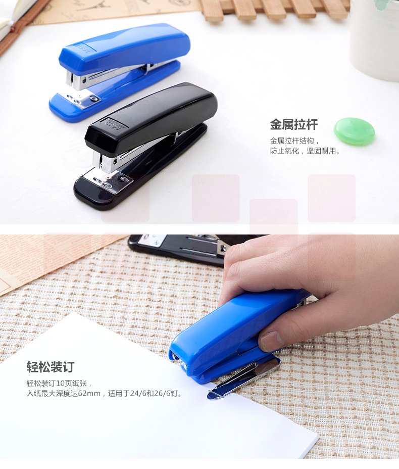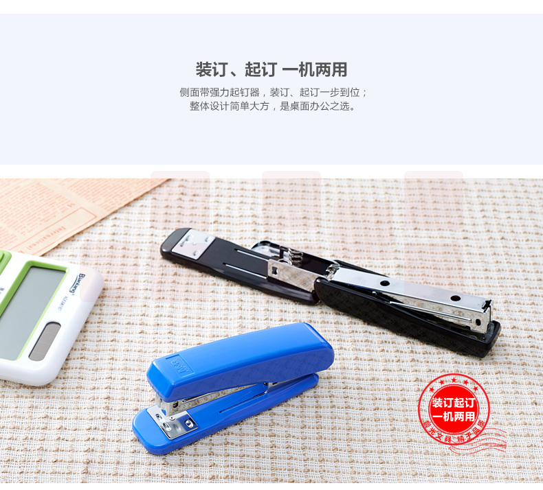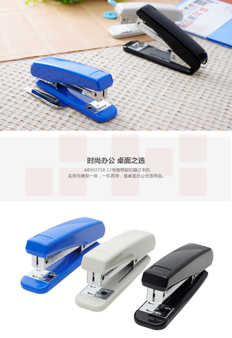 晨光 12号侧带起钉器订书机 金属拉杆办公订书器 ABS92718 灰