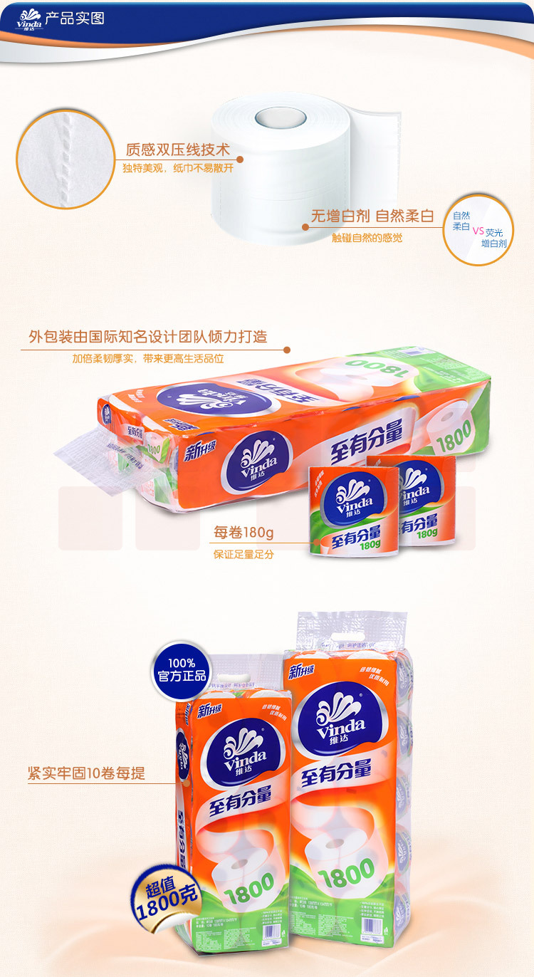 维达 V4081 卷纸3层180g10卷138mm*104mm 6提/箱