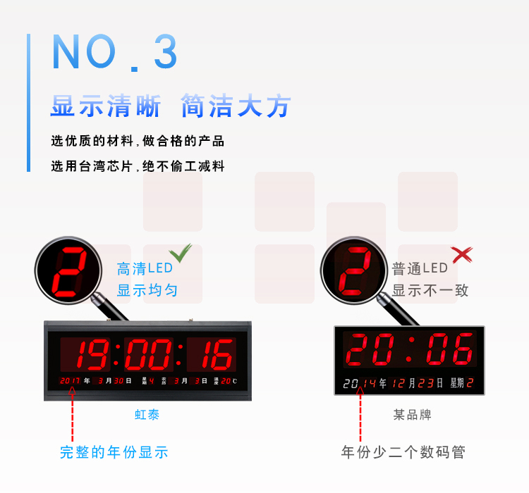 虹泰(HoTai)LED电子万年历挂钟 客厅电子钟夜光时钟 4819 23x68cm 全日历红光