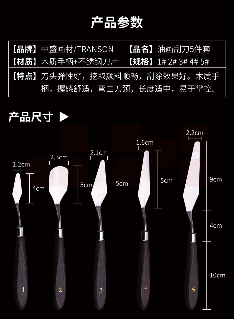 中盛画材 油画刮刀颜料刀油画工具刮刀油画材料颜料美术调色全套5支