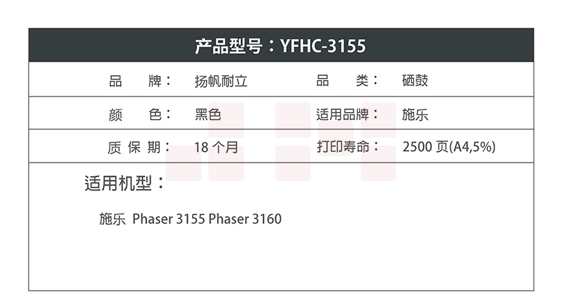 扬帆耐立YFHC FX-3155黑鼓(带芯片)施乐 Phaser 3155 Phaser 3160