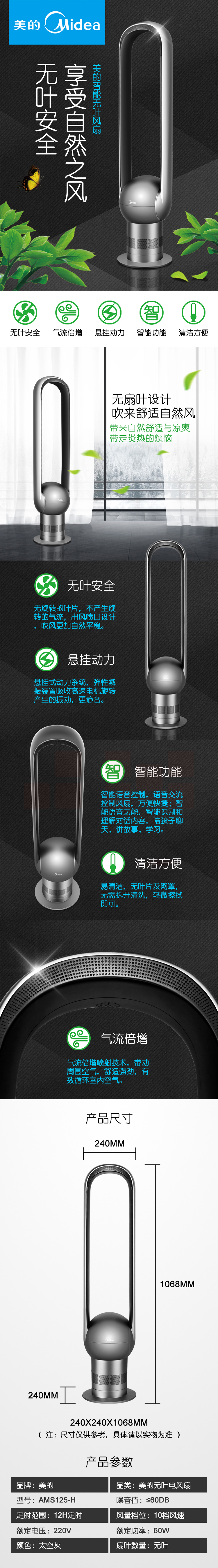 美的(Midea) AMS125-H 无叶电风扇