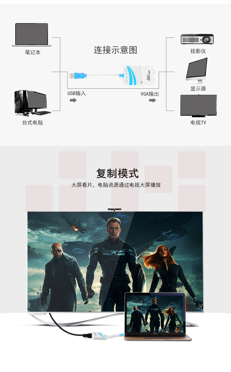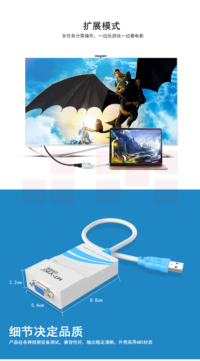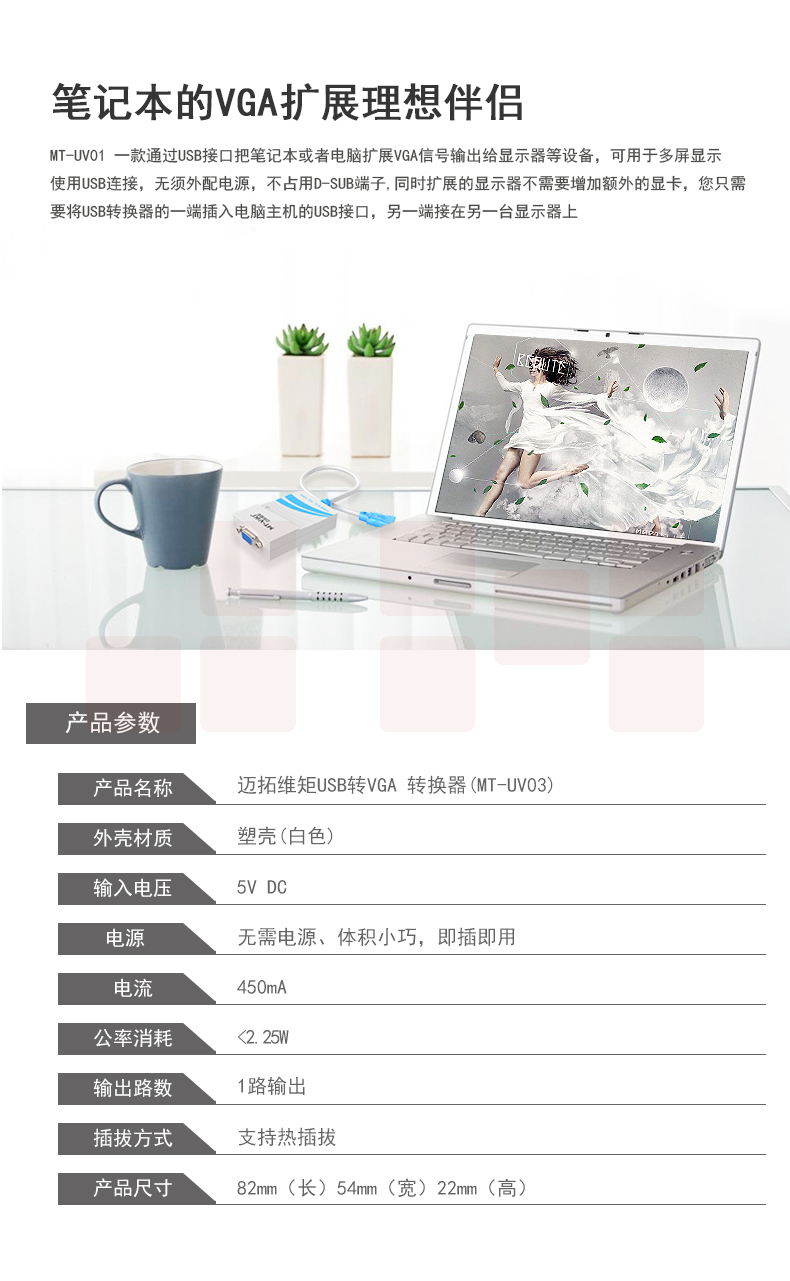 迈拓维矩MT-UV03 usb转vga转换器投影仪外置显卡高清多屏扩展USB3.0