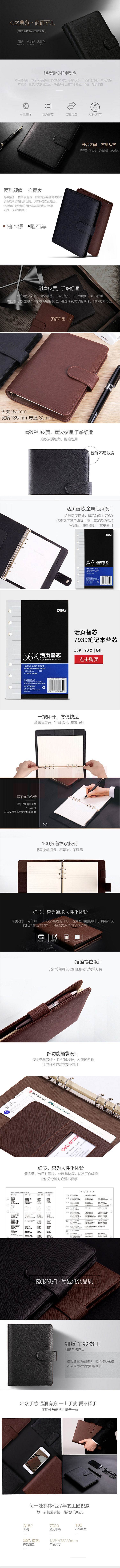 得力3152 活页本记事本 6孔/48k 皮面本100张
