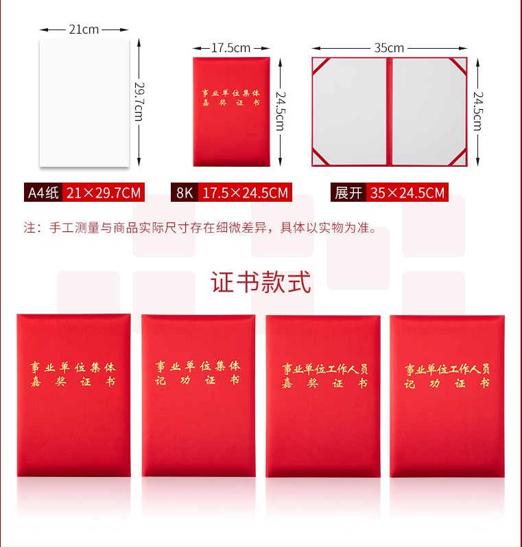 高档绸面事业单位工作人员嘉奖证书 8K 货号:JC