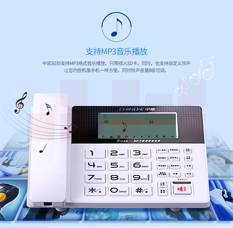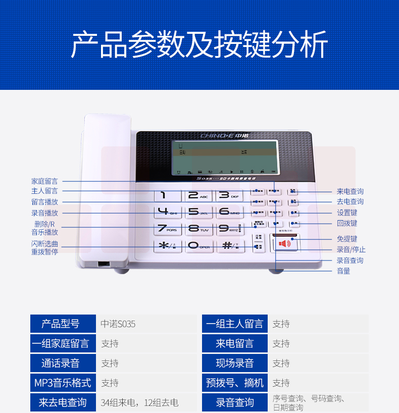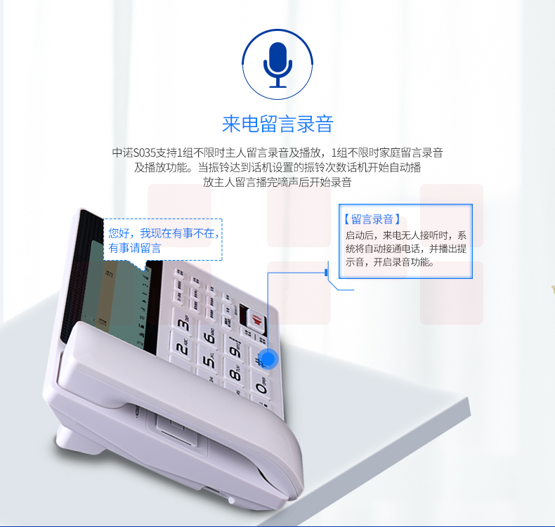 中诺 S035 智能录音电话机 固定座机大容量语音留言白色