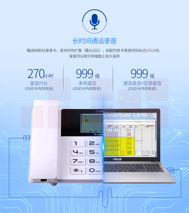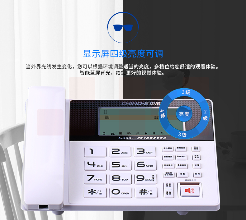 中诺(CHINO-E)智能录音电话机座式家用办公室固定座机大容量语音留言