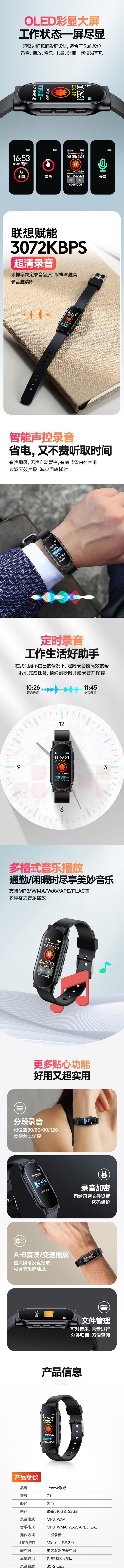 联想 录音笔C1 16GB录音手环 腕式录音器