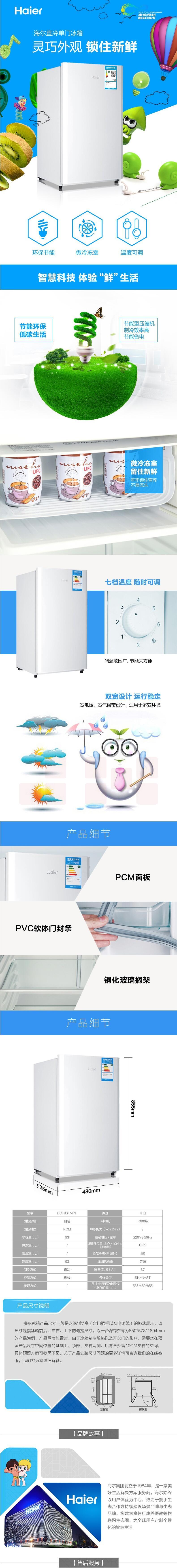 海尔(Haier)93升单门冷藏节能小型电冰箱 一级能效 BC-93TMPF