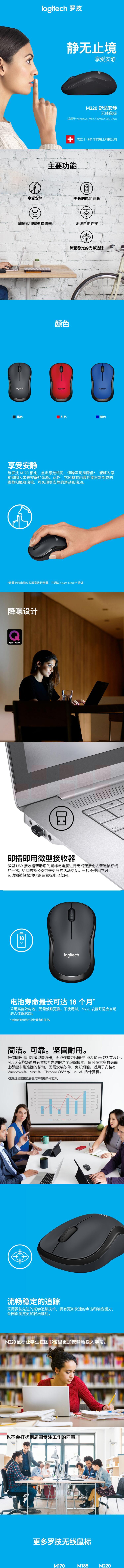 罗技 M220 无线静音鼠标 对称鼠标 带无线接收器 灰色