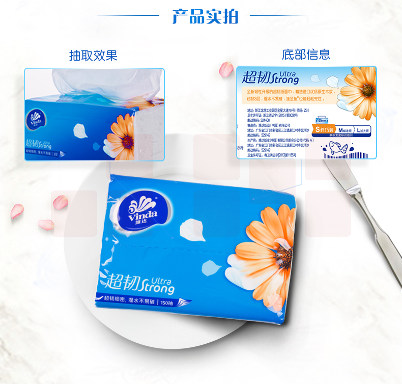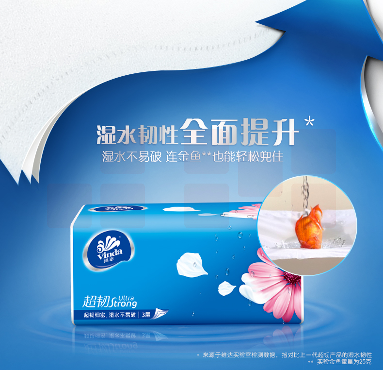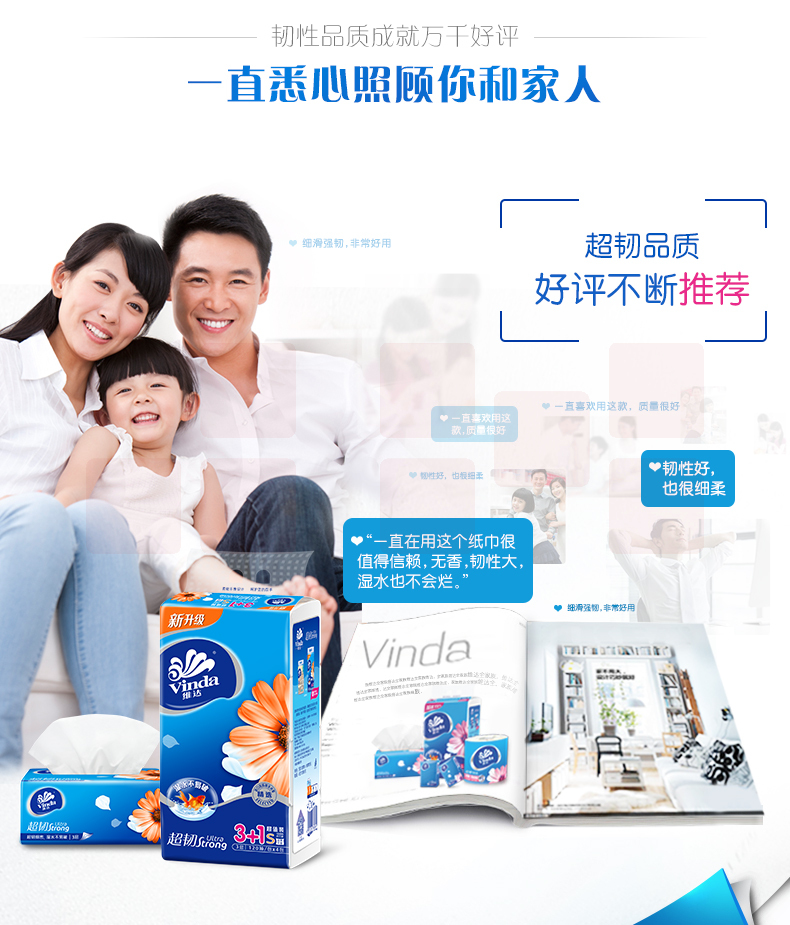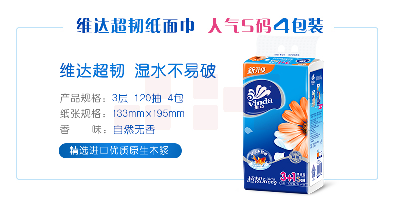 维达 V2223 超韧系列3层120抽软抽面巾(小规格) 4包/提