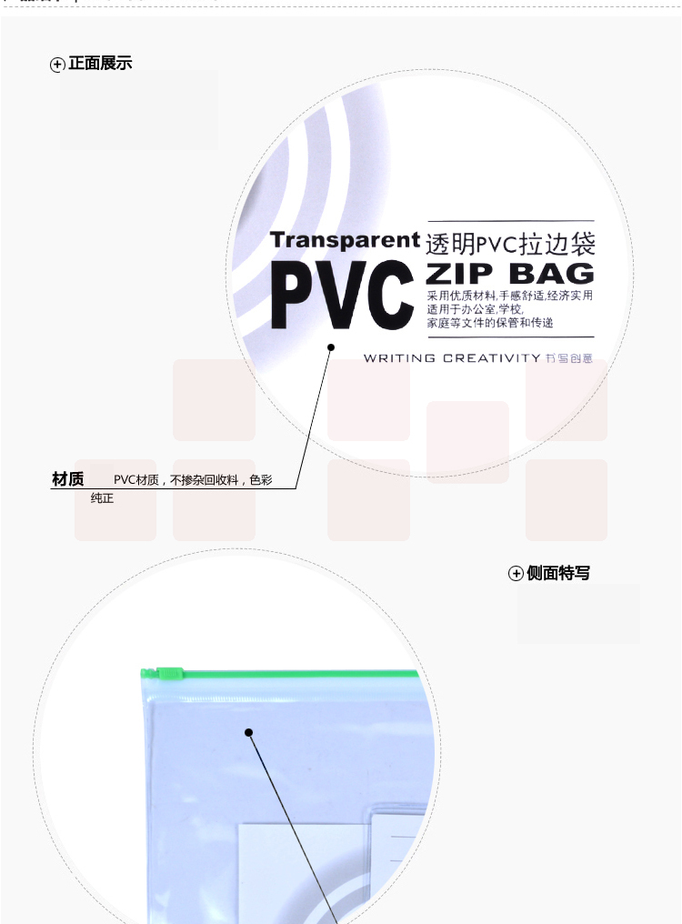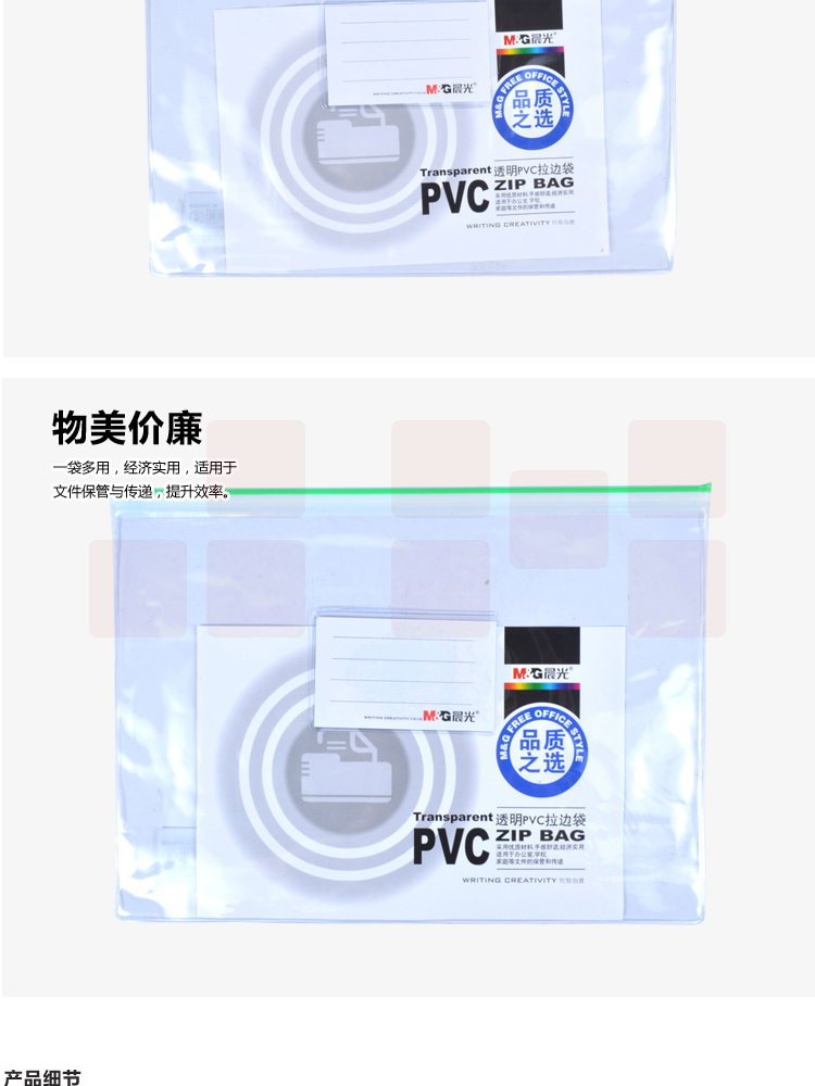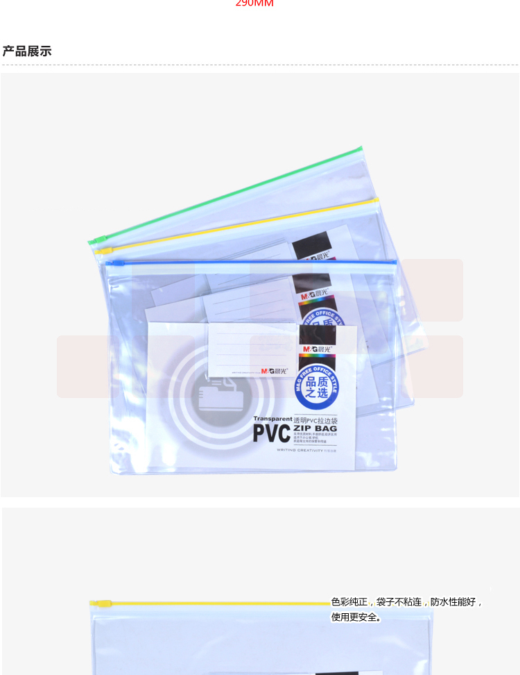 16K拉边袋文件资料袋PVC透明 办公文具 红黄蓝绿颜色随机 ADM94502