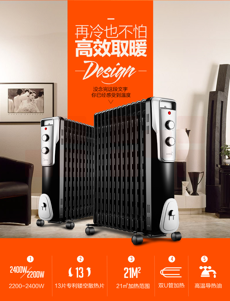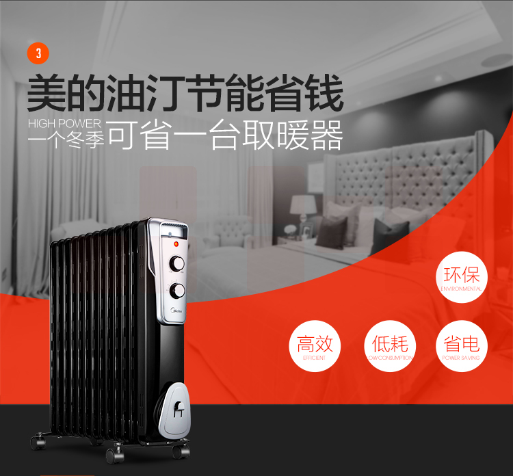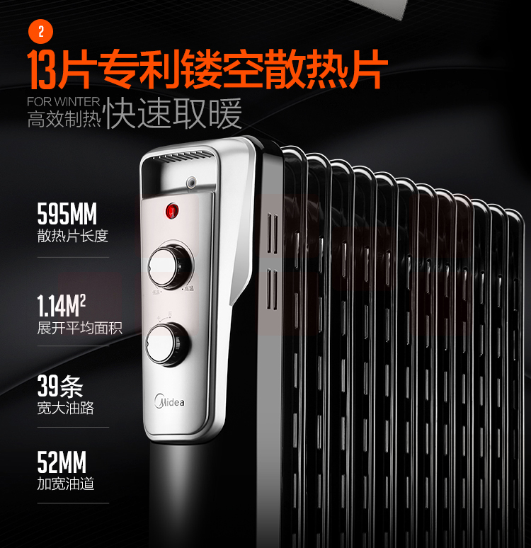 美的(Midea)NY2513-16J1W 13片电热油汀取暖器/电暖器