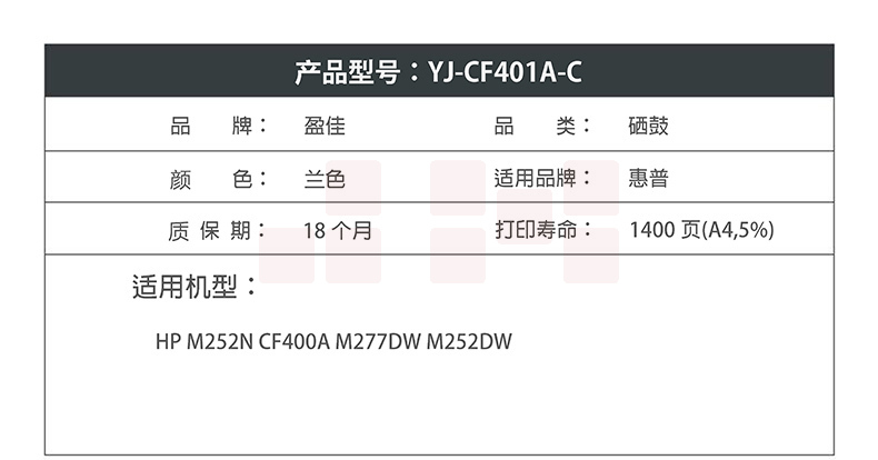 盈佳YJ CF401A(201A)兰鼓-1.4K(带芯片)