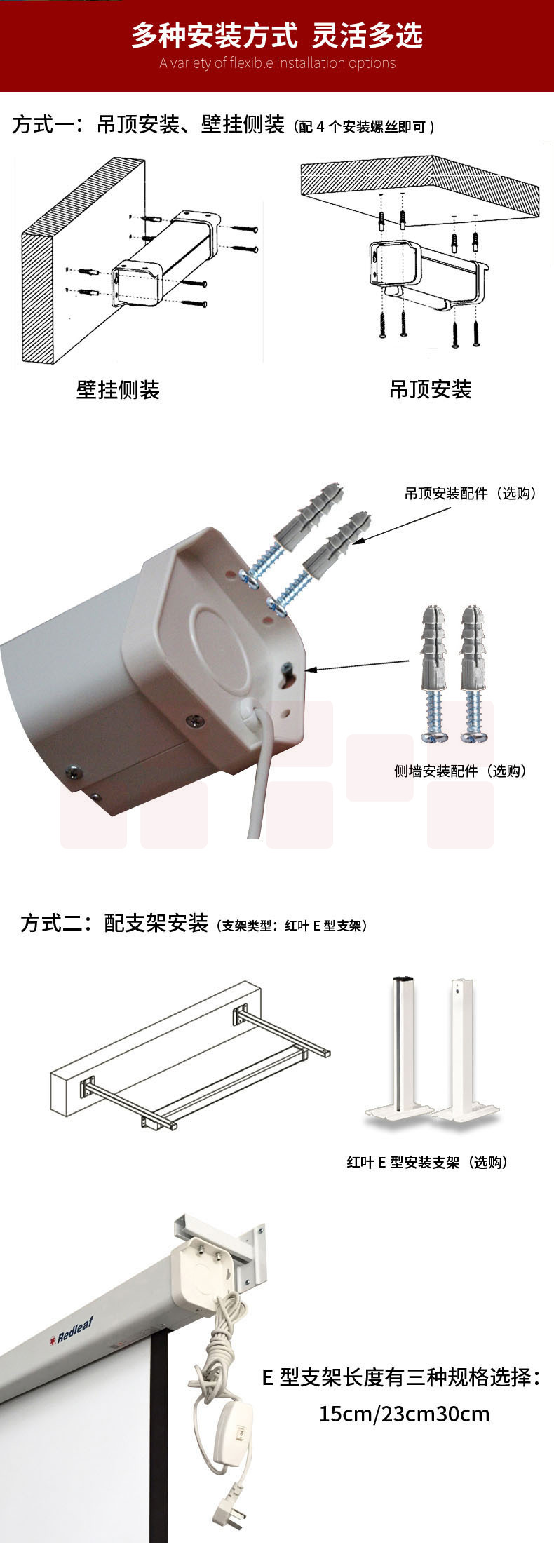 红叶(HONGYE)250英寸4:3电动玻珠白塑银幕 白塑 5.08*3.81
