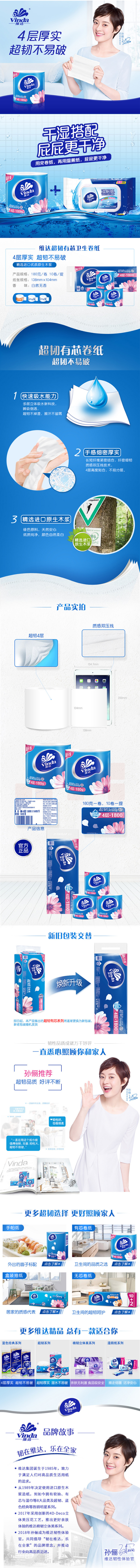 维达(Vinda) 超韧卷纸 V4688 白色 138*104mm 4层 180g/卷 10卷/提