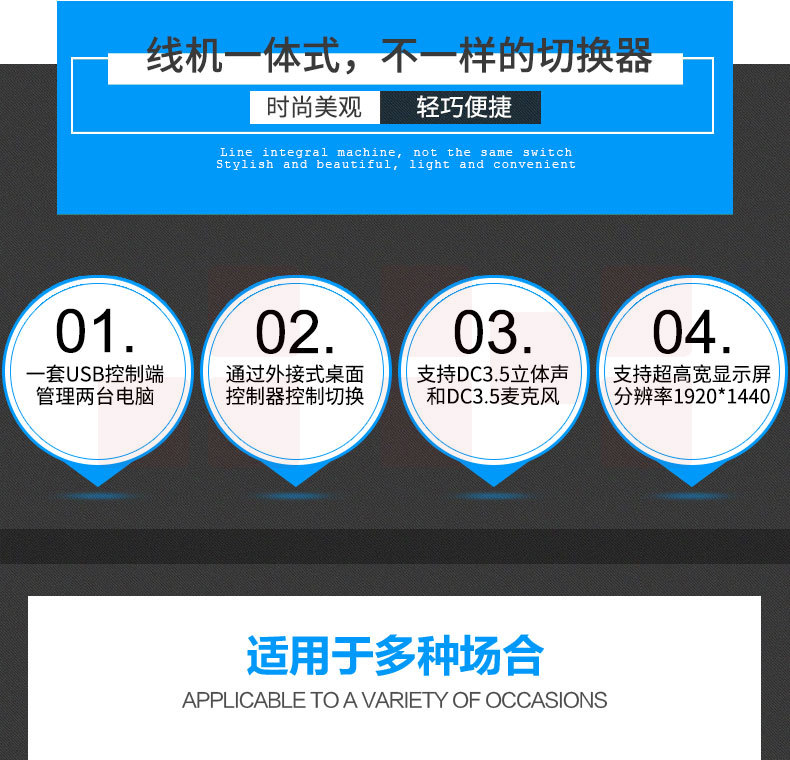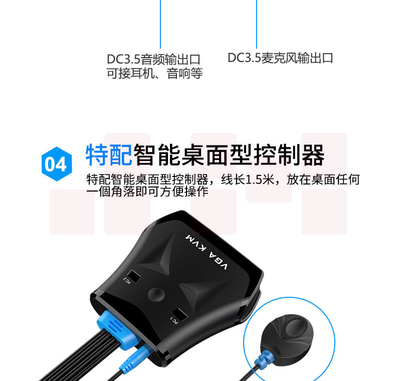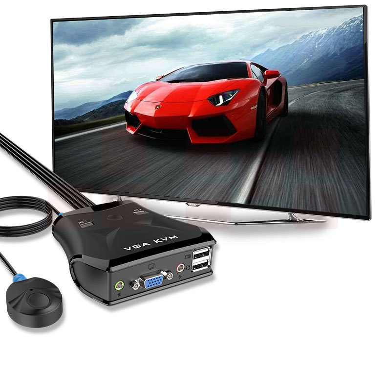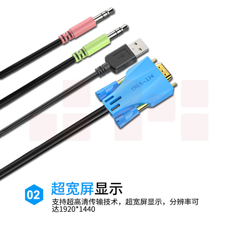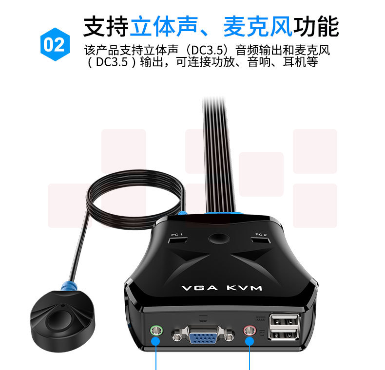 迈拓维矩 MT-201VL 2进1出KVM切换器 2口手动USB VGA 线机一体带音频 2进1出