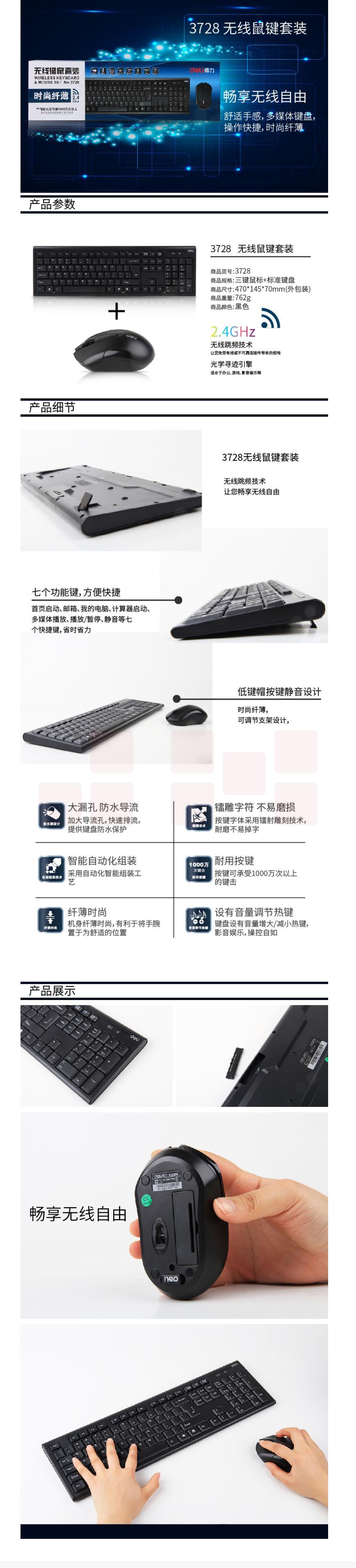 得力(deli) 3728 无线键鼠套装 可调速鼠标 黑色