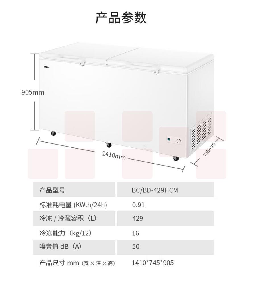 海尔(Haier)429升 双开门商用大容量深冷速冻冰柜 BC/BD-429HCM 1410*905*745