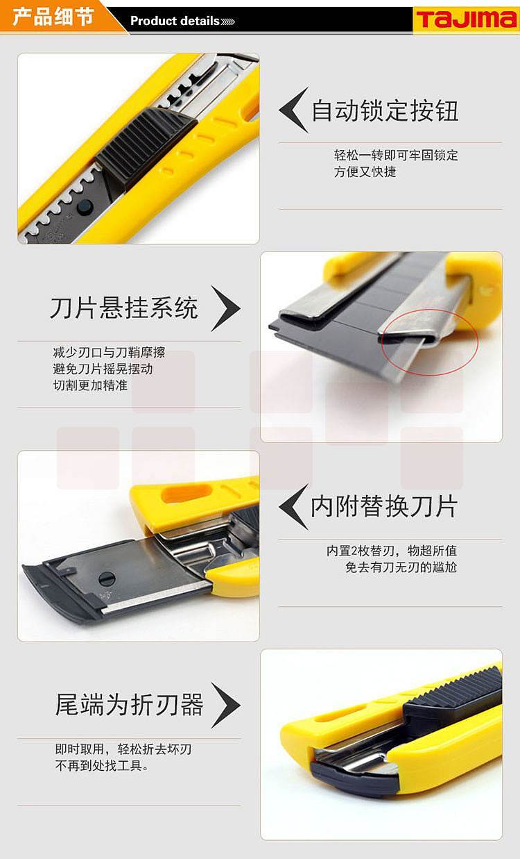 特点:自动锁定功能,刀尾具备刀片折断功能
