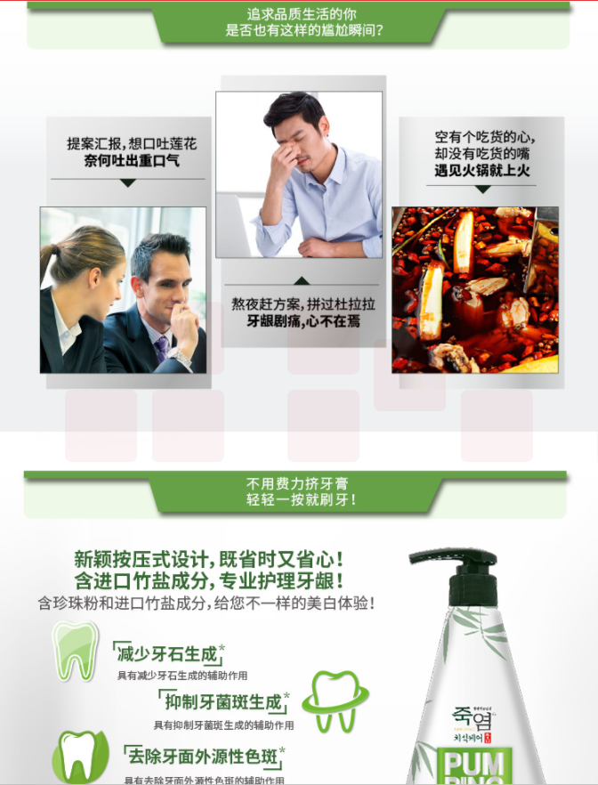 LG 竹盐原生白防牙石美白按压式牙膏 285G (瓶)