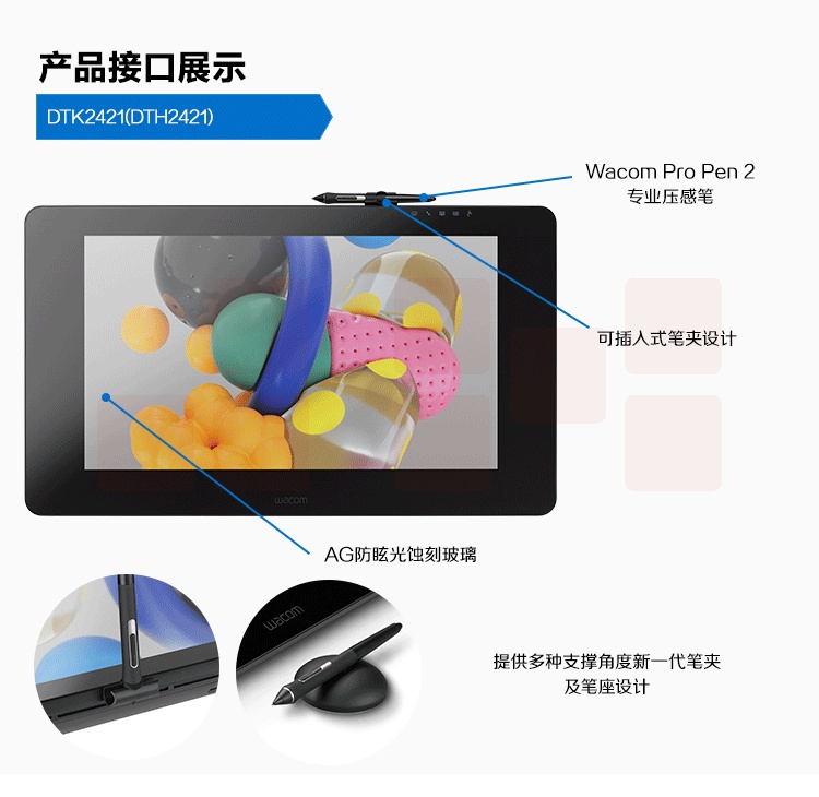 和冠(Wacom) 新帝Pro 23.6英寸 数位屏 绘画屏 手绘屏 数位板 触控液晶数位屏 4K超高清 DTH2421