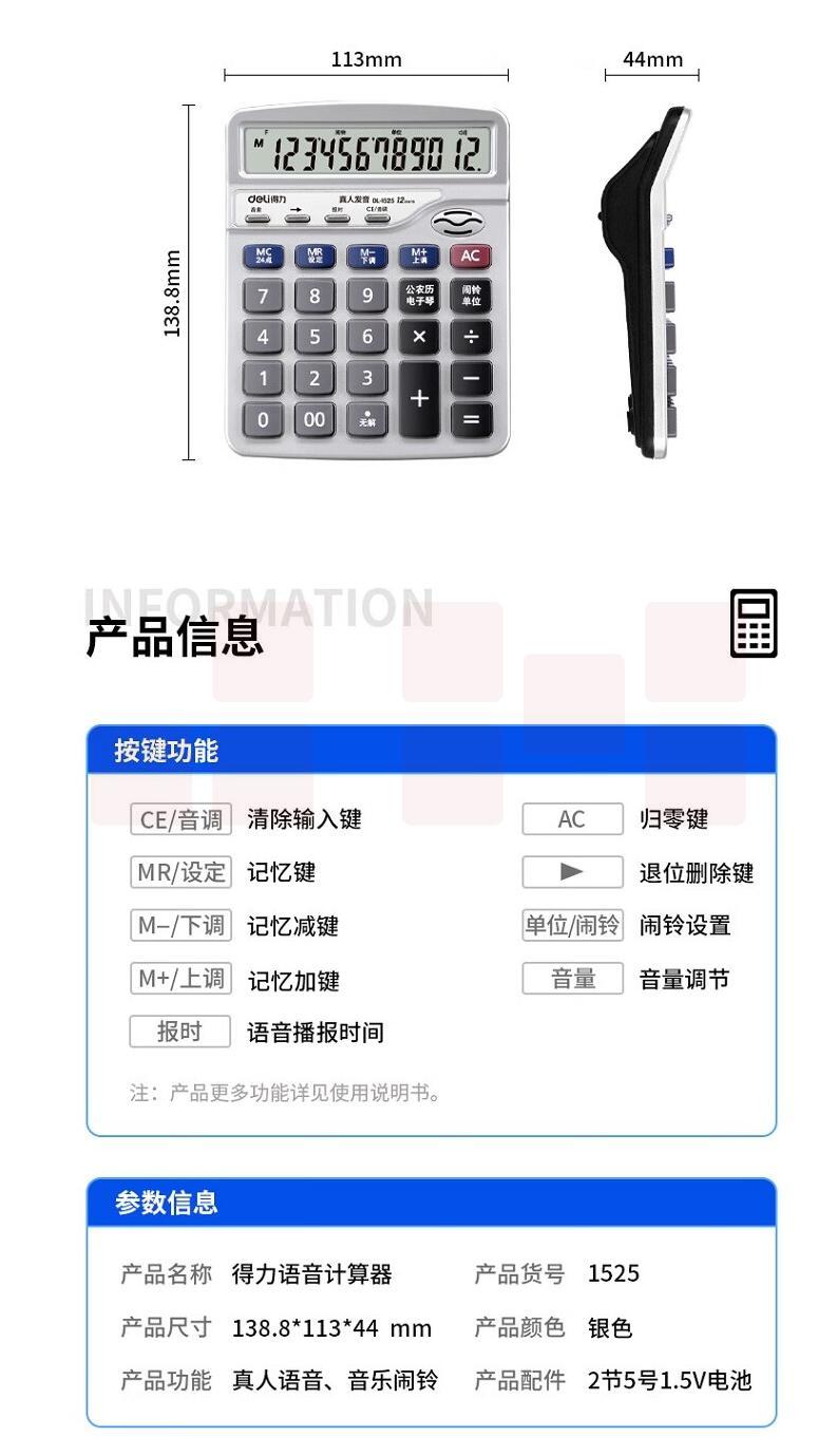 得力 1525 语音计算器 (单位:台) 银色