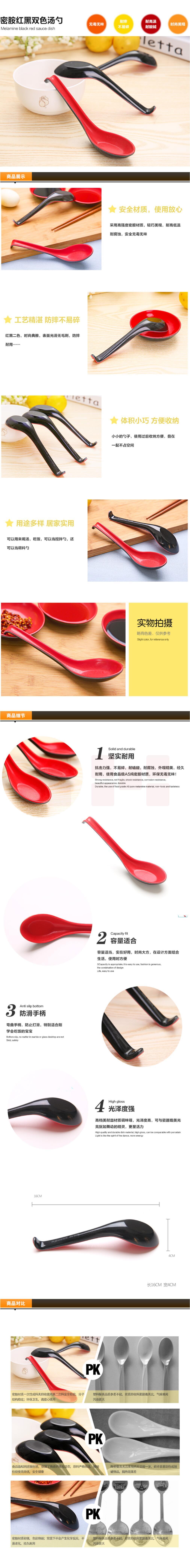 密胺彩色勺子红黑勾勺汤勺仿瓷塑料汤勺