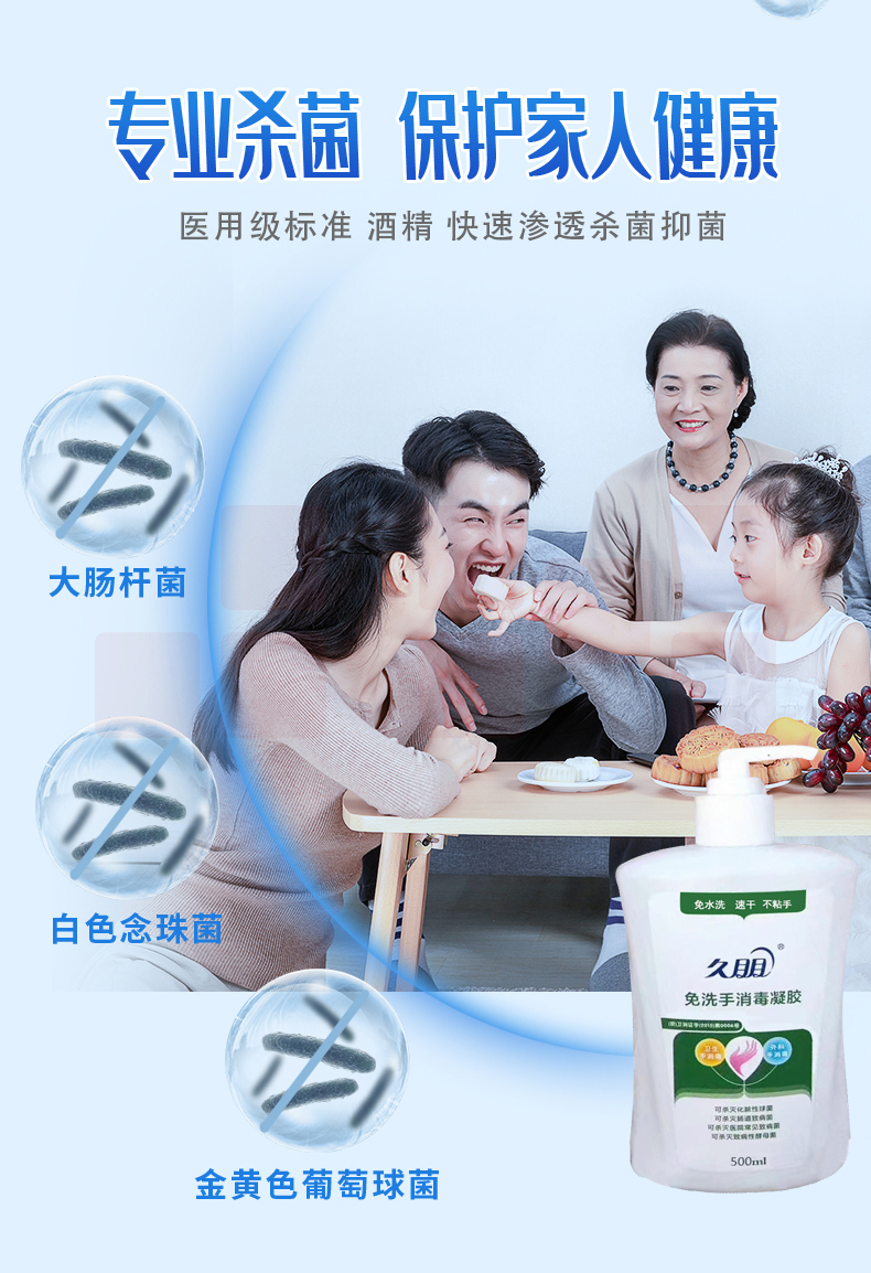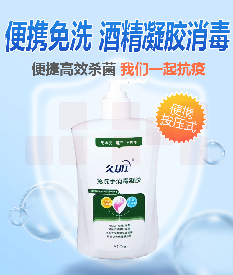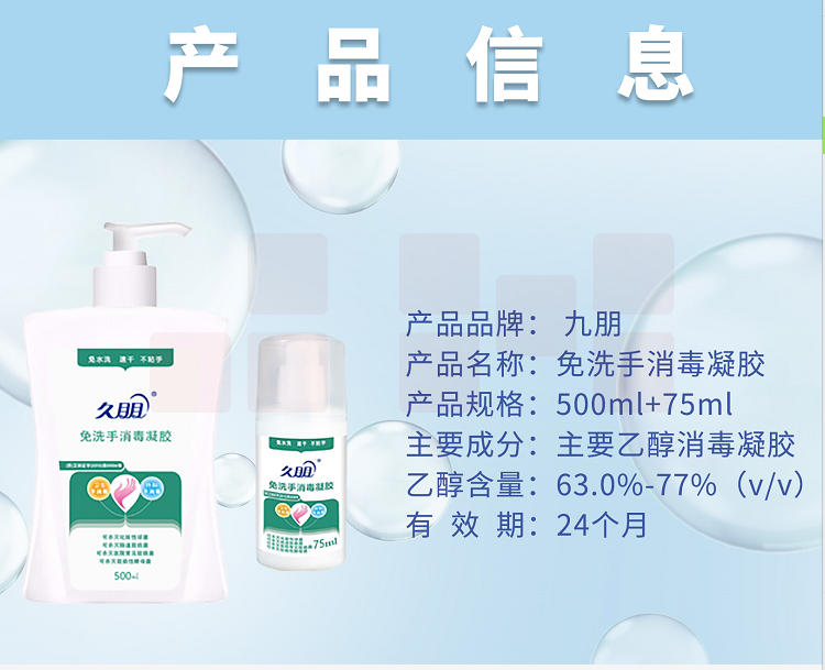 久朋 500ml/瓶+75ml便携装免洗手消毒凝胶 手消毒液 洗手液